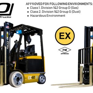 EX-rated trucks have specific protection measures, which allow them to operate in hazardous locations with potentially explosive or flammable vapors, liquids, dusts or fibers. The RICO certified EX conversions have been developed for operations in Class 1 – Division 1 & 2 Group D (gas) and Class 2 – Division 1 & 2 Group G (dust) environments.
