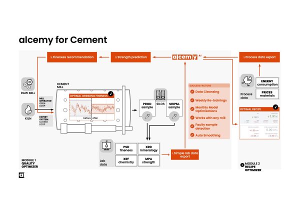 Picking up some of these themes, David Alós-Shepherd, head of business development at AI tech company Alcemy, noted that a core challenge for cement production quality control is the need to wait up to 28 days for the results of physical testing, making real-time control “impossible.” Machine learning algorithms provide a solution to this limitation, utilizing existing laboratory data to predict cement quality in real-time with high accuracy. “This gives operators the ability to make immediate decisions that were previously delayed by weeks, proactively optimizing the grinding and blending process and fine-tuning recipes to meet quality targets, without overdesigning the product.”